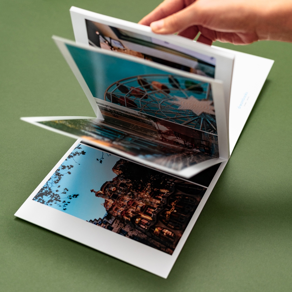 Nos álbuns de fotos em papel fotográfico de 400 g, as folhas são compostas exclusivamente com a sua contracolagem, tornando-as mais finas e flexíveis. Estas assemelham-se mais às páginas de um livro, contando com a elevada qualidade do papel fotográfico.