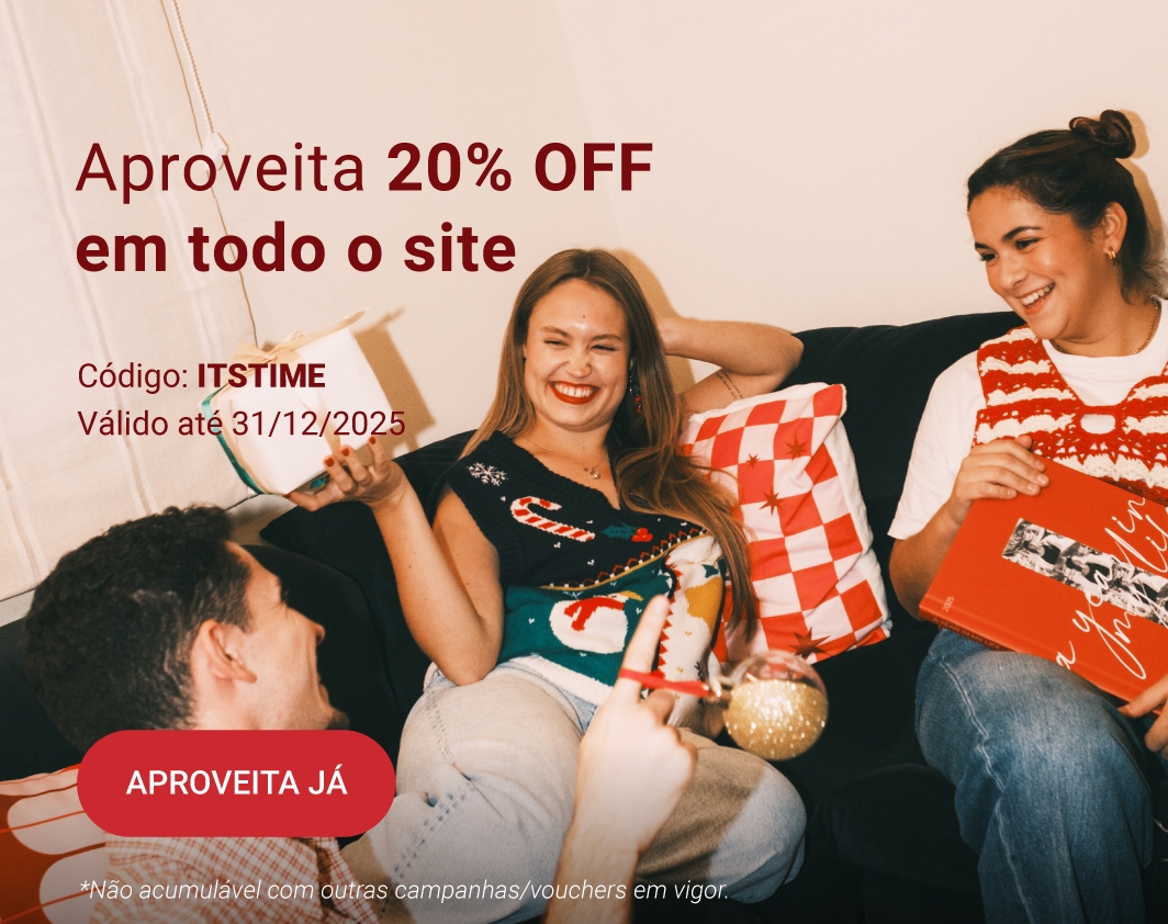 Campanha de 20% de desconto em todo o site, válida de 03/11/2025 a 31/12/2025, mediante a submissão do código ITSTIME.