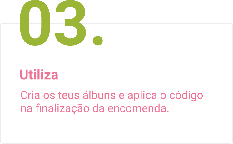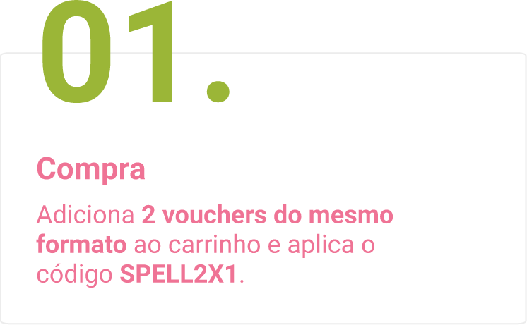 Campanha de 2 Vouchers de Álbuns de Fotos pelo preço de 1, válida de 27 de outubro a 2 de novembro de 2025 mediante a submissão do código SPELL2X1. Campanha válida exclusivamente em vouchers de Álbuns de Fotos. Caso pretendas aproveitar a campanha mais do que uma vez, deves fazer as encomendas separadamente. Campanha não acumulável com outras campanhas em vigor. Os vouchers são entregues por e-mail, pelo que não têm custos de envio associados. No entanto, quando utilizares os teus vouchers, estes apenas possuem portes de envio gratuitos em álbuns de valor superior a 30€. Os vouchers incluem apenas o número de páginas base.